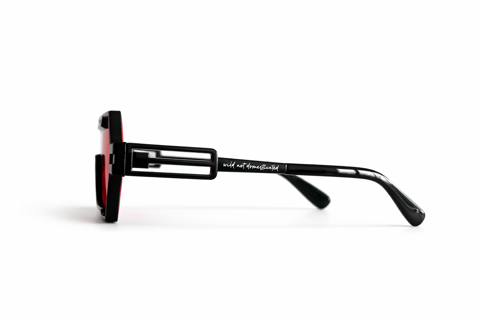 WND Red Shield feature a single, continuous red lens engineered to dominate both style and presence. Encased in a sharp black frame with architectural lines, this design delivers a powerful, cyber-luxury aesthetic that stands out instantly.